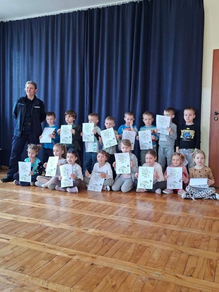Dziś naszą grupę odwiedziła Pani Policjantka, która opowiedziała dzieciom o swojej pracy oraz o tym, jak dbać o bezpieczeństwo na drodze i w codziennych sytuacjach.