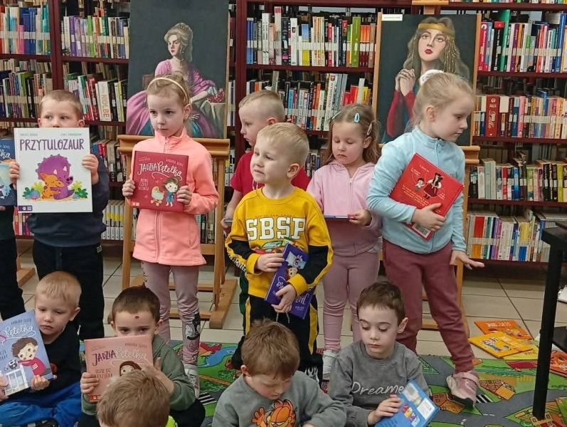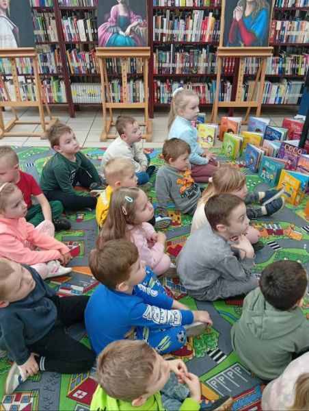 Dnia 09.03. 2026r. gr. IV udała się do Biblioteki Pedagogicznej. Przedszkolaki zapoznały się z biblioteką, czytelnią, zasadami wypożyczania książek oraz szanowania księgozbioru. Dzieci kształtowały nawyk sięgania po książkę oraz rozwijały logiczne myślenie. Obejrzały bajkę w teatrzyku ,, Kamishibaj ". Nasze pierwsze spotkanie w bibliotece było ciekawe i interesujące. Dziękujemy pani bibliotekarce za miłe spotkanie.